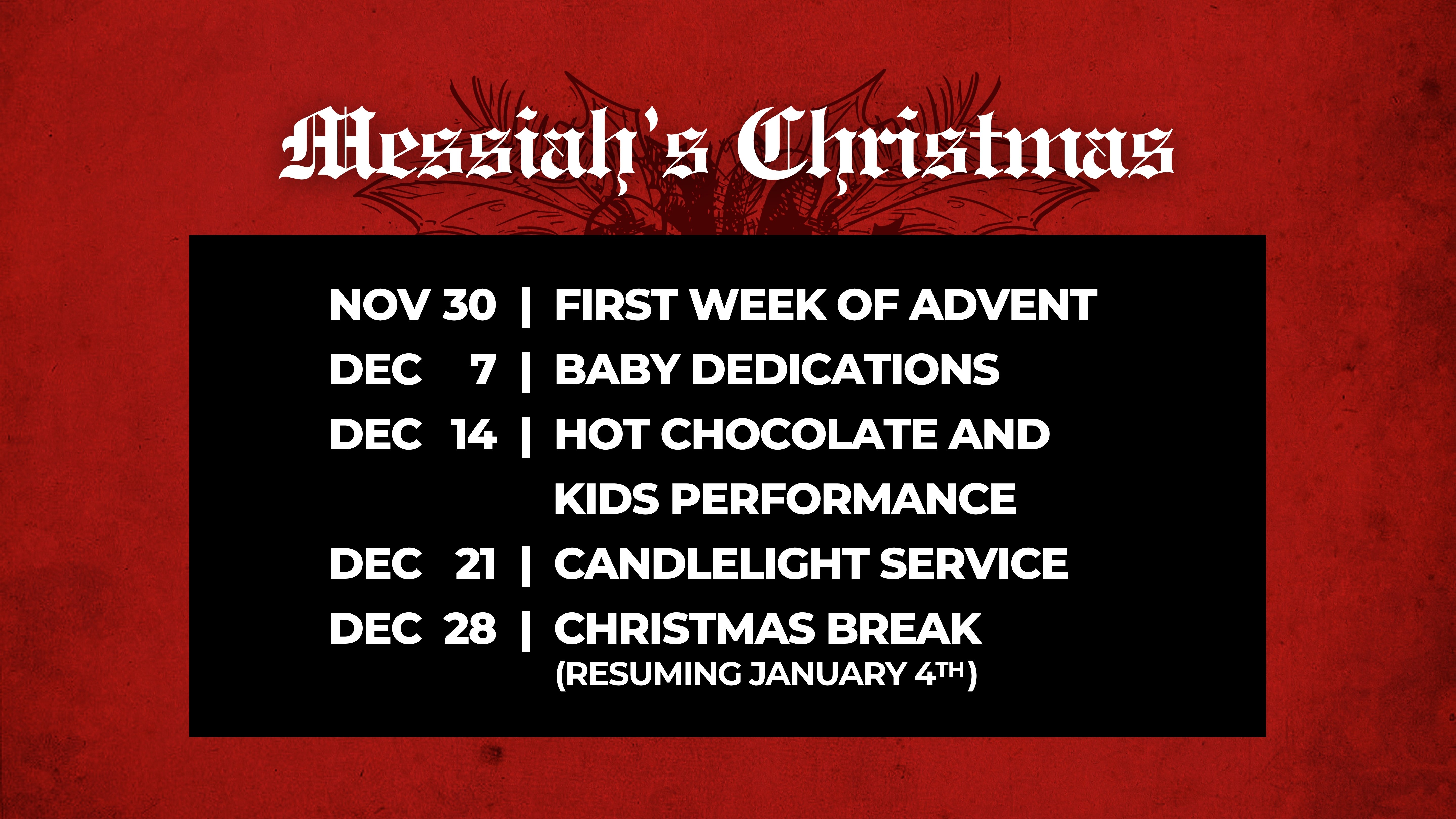 Messiah’s Christmas Series